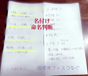 ● ご夫婦、ご家族で考えて、出し合った3つの名前を事前(1週間前)に頂戴して、まずはその3つを判断いたします。