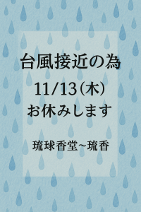2025.11.12(水)台風26号接近の為、11/13(木)「琉香」お休みしますm(__)m