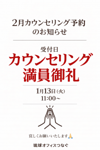 2026.1.13(火)2月カウンセリング予約満員御礼です!お電話ありがとうございましたm(._.)m